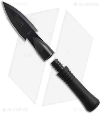The SOG Spirit is a sleek and aerodynamic fixed blade knife that allows the user to unscrew the handle and use a broom handle (fits most common broom handles) to complete the spear! In a survival situation, use a branch to make the spear shaft and tighten it with a nail or the provided setscrew. With the provided handle the Spirit can be thrown or used as a cutting tool. The Spirit comes with a nylon sheath.